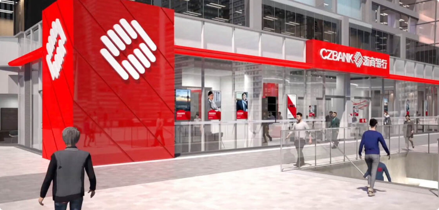 While contracted by SLD our team provided digital strategy, experience design, content creation, and even pioneered research methods through the blending of AR/VR and Neuroscience to validate design. As part of a new flagship branch design for China Zheshang Bank. Headquartered in Hangzhou, China, China Zheshang Bank has a network of 300 branches in major Chinese cities across the country. SLD in partnership with MetaThink developed a new experience branch concept that leveraged new brand positioning, corporate identity and integrated digital technology. Our team helped to deliver a branch of the future with fully integrated digital as a key part of the design.