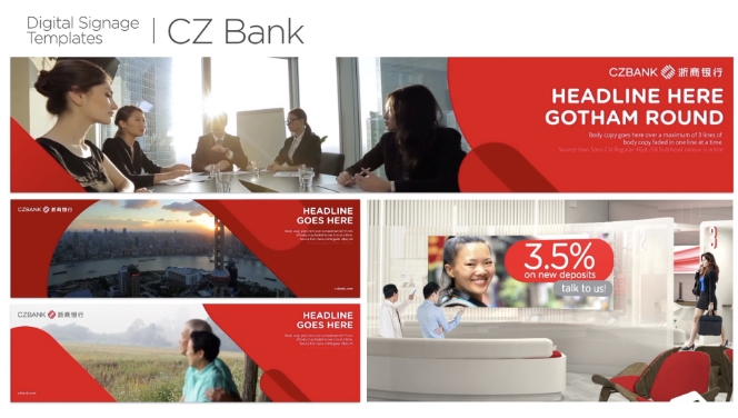 Our team has also helped CZ Bank design effective digital signage content templates to optimize it’s speed to market. We also consulted on sourcing the best digital signage content management system for managing the in-branch network more efficiently. We helped design master HTML5 based templates allowing more efficient and localized content creation and updates.